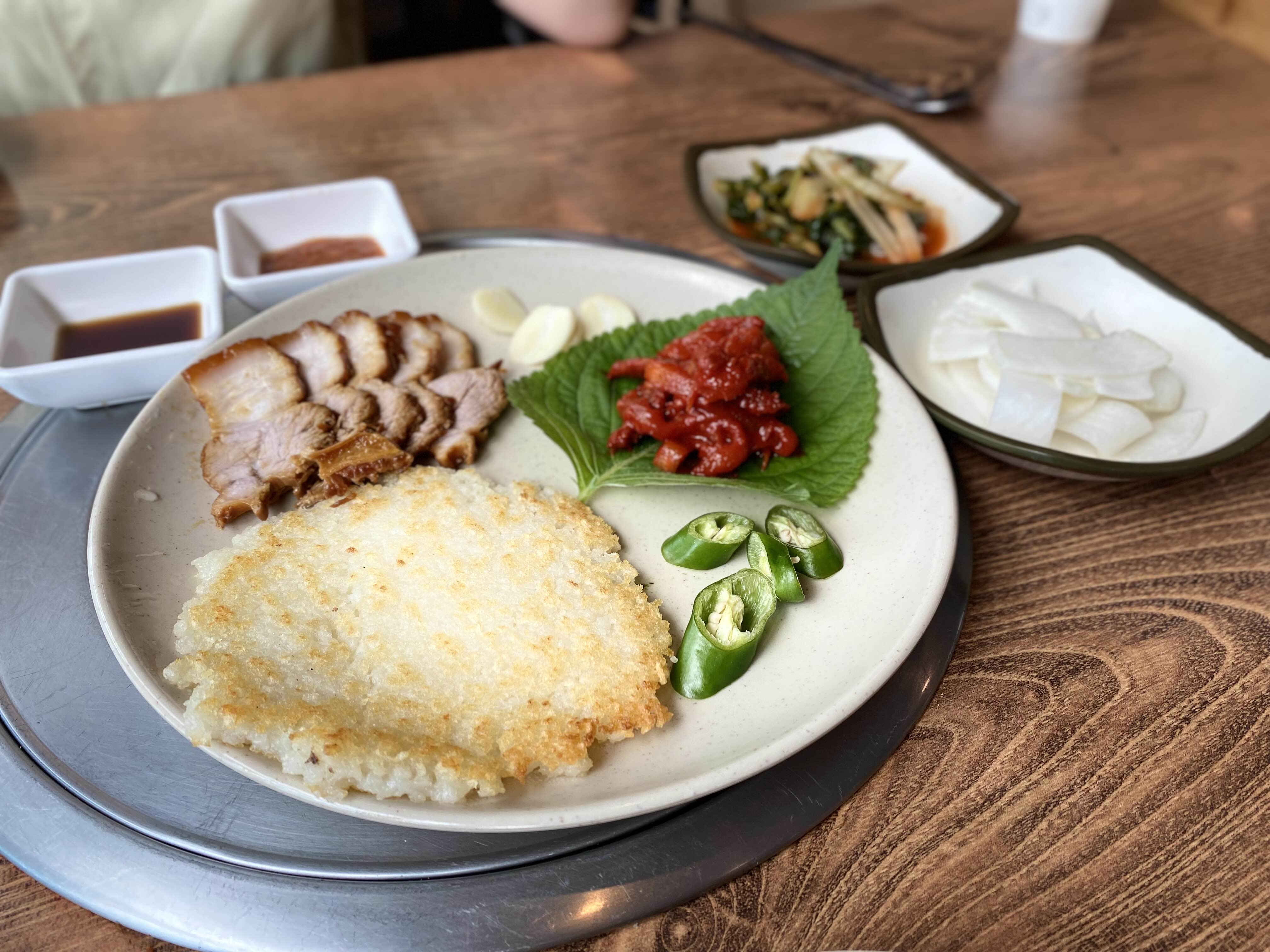 정식시키면 나오는 감자전 + 수육 5조각 이게 9천원인샘인데..
