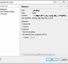 Target 썸네일형 리스트형 [eclipse/tip] 파일찾기 중 특정폴더 제외하기 이클립스를 사용하다보면 open resource(단축키:ctrl + alt + r)이나 파일찾기를 많이 사용하는데target 폴더에 내용이 같이 나와 가끔 실수를 하곤한다. 검색결과에서 제외시키는 방법 제외하고자 하는 폴더 우클릭 -> properties Resource에 Attribute항목에 Derived 체크 이렇게 해주면 검색결과나 open resource에서 검색되지 않는다. eclipse,target,open resource,ignore,파일찾기,제외 더보기 이전 1 다음